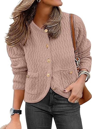 Women's Knit Cardigan Sweaters Fall Fashion Long Sleeve Open Front Button Down Trendy Casual Sweater Jacket