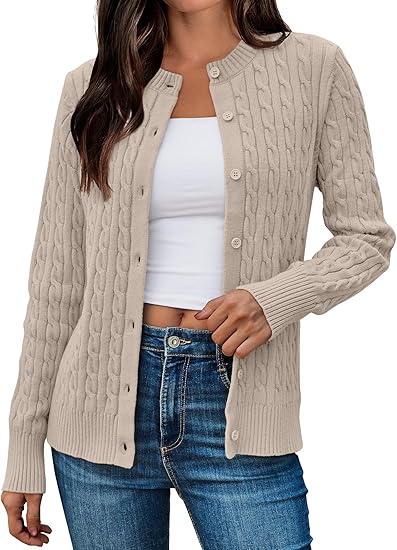 Cardigan Sweaters for Women Cotton Cable Knit Sweater Jackets Lightweight Business Casual Outfits