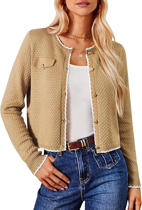 Women's Cardigans Button Down Knit Sweater Contrast Color Lightweight Lady Jackets Fall Outfits