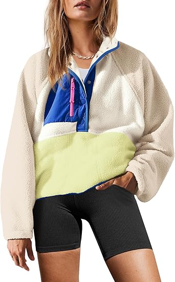 Womens Half Zip Sherpa Fleece Pullover Soft Oversized Sweatshirt with Pockets Warm Fuzzy Sweater