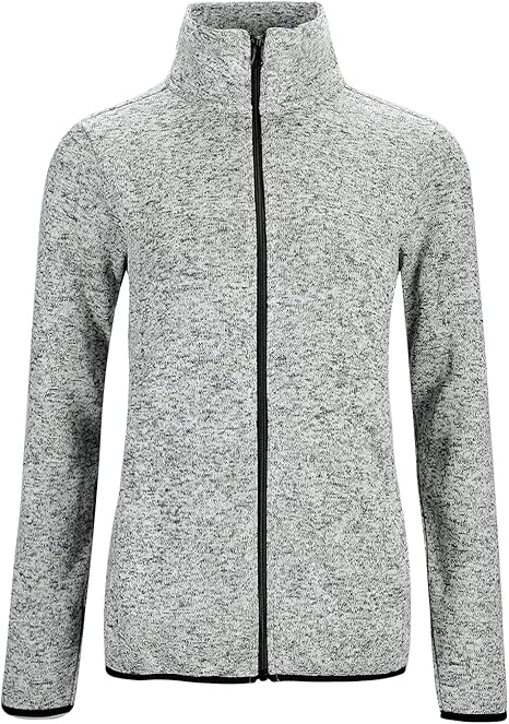 Women's Long Sleeve Sweater Fleece Zip Up Speckled Jacket with Pockets