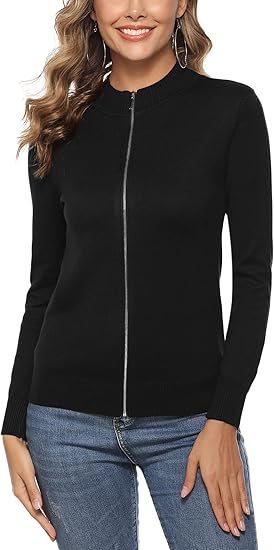 Zip Front Jacket for Women Casual Lightweight Cardigan Zip Up Sweater Tops Long Sleeve Knitted Sweatshirts