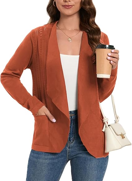 Womens Cardigan Lightweight Soft Long Sleeve Open Front Casual Knit Cardigan Sweater